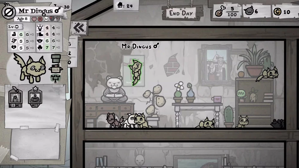 根据你的策略,培育猫咪,组建终极喵喵大军,派他们踏上颇具深度和难度的回合制冒险之旅。抽选能力,获得物品,改变影响数代的遗传特性,享受这款类Rogue策略游戏,感受《以撒的结合》与《终结将至》作者的创意和设计。
